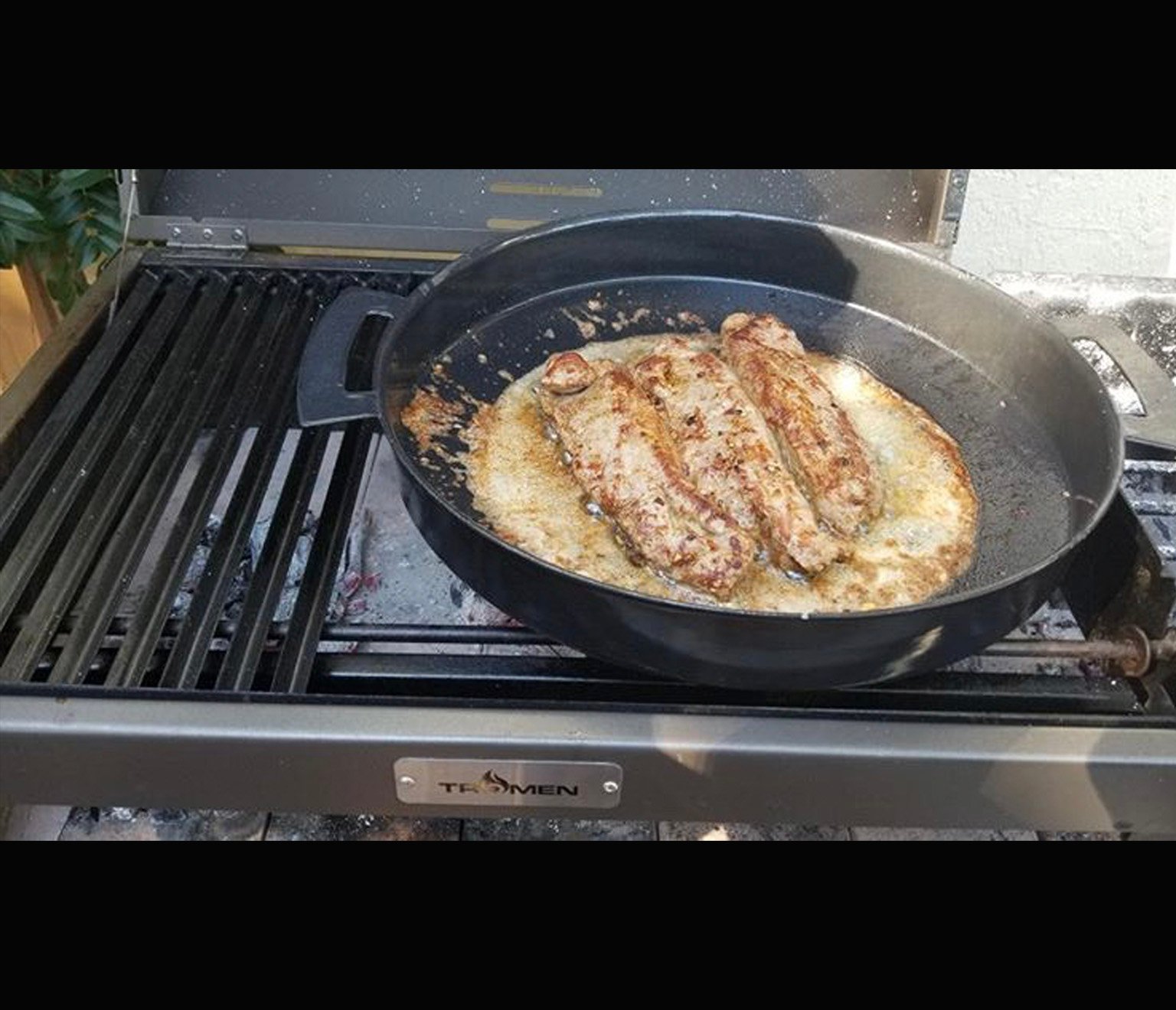 - An enameled firebox is included to start wood or charcoalfire.